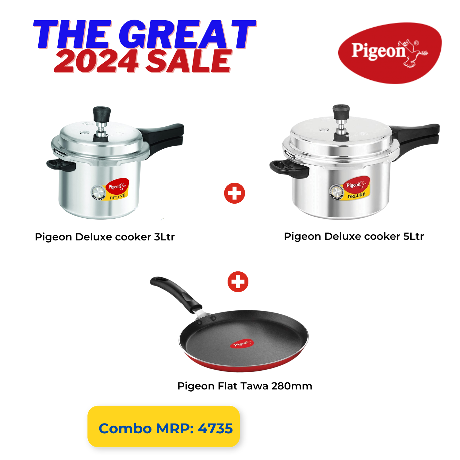 Embark on a culinary adventure with the Pigeon Deluxe Aluminium Pressure Cooker 3L and 5L set, paired perfectly with the Flat Tawa 280. This stellar combo is designed to cater to all your cooking needs, whether you're whipping up a quick meal or preparing a feast for your family.