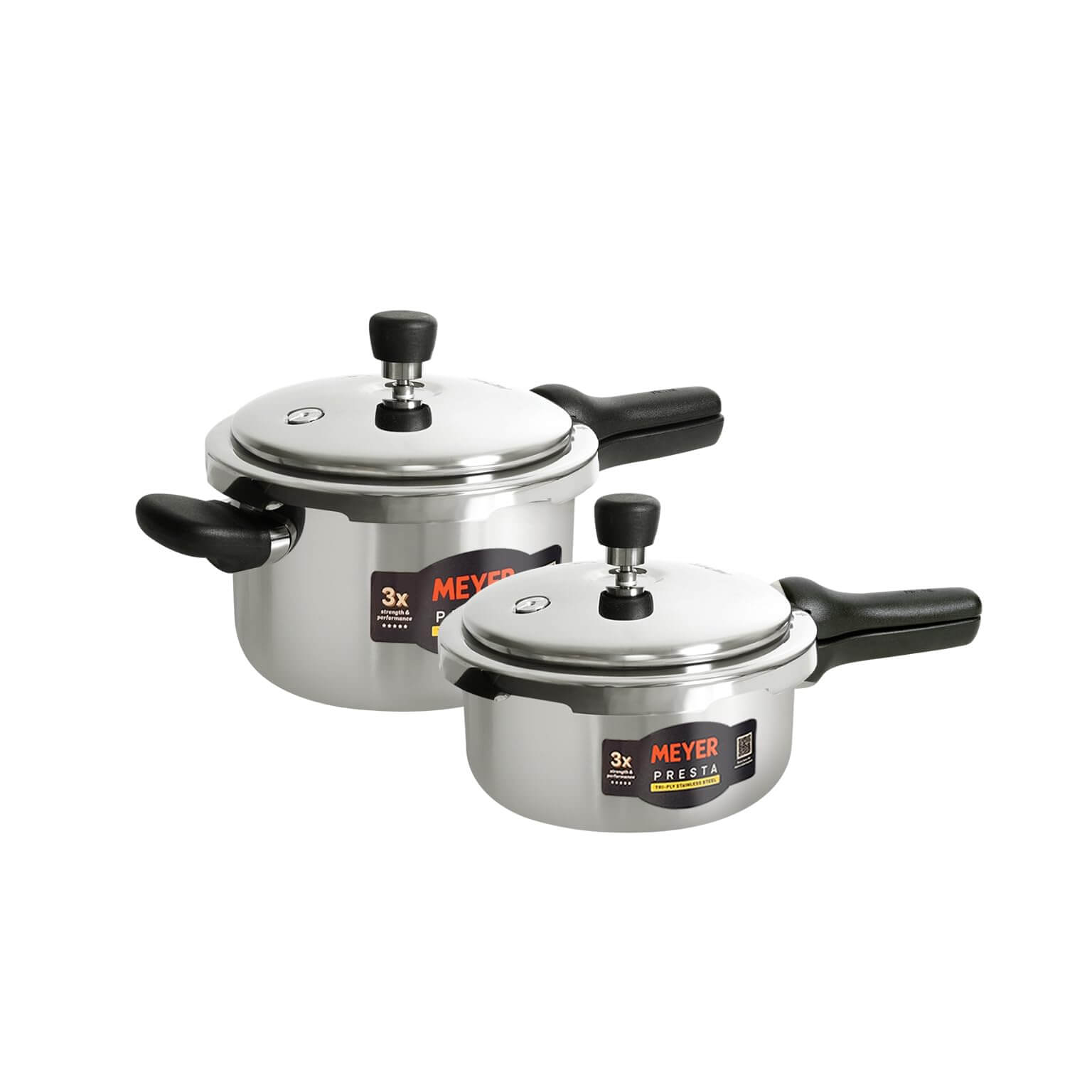 Transform your cooking experience with the Meyer Presta Tri-ply Stainless Steel Pressure Cooker Combo, a perfect blend of traditional Indian cooking wisdom and modern engineering excellence. This premium combo set brings you two essential sizes – 2L and 3L – to handle everything from quick weekday meals to elaborate family feasts.