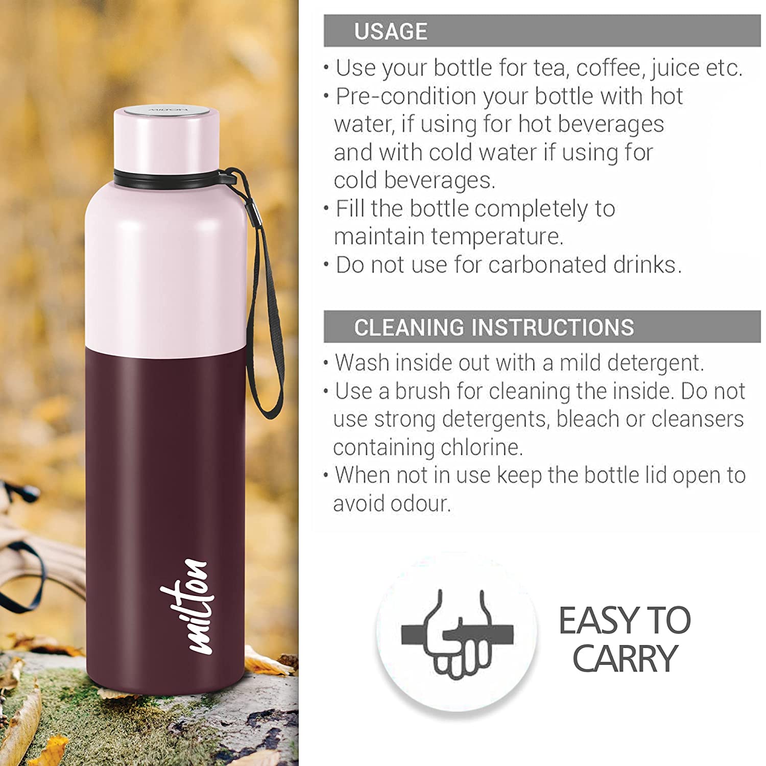 Milton Ancy 1000 Thermosteel Water Bottle 1050 ml, | 24 Hours Hot and Cold | Easy to Carry | Rust Proof | Tea | Coffee | Office| Gym | Home | Kitchen | Hiking | Trekking | Travel Bottle