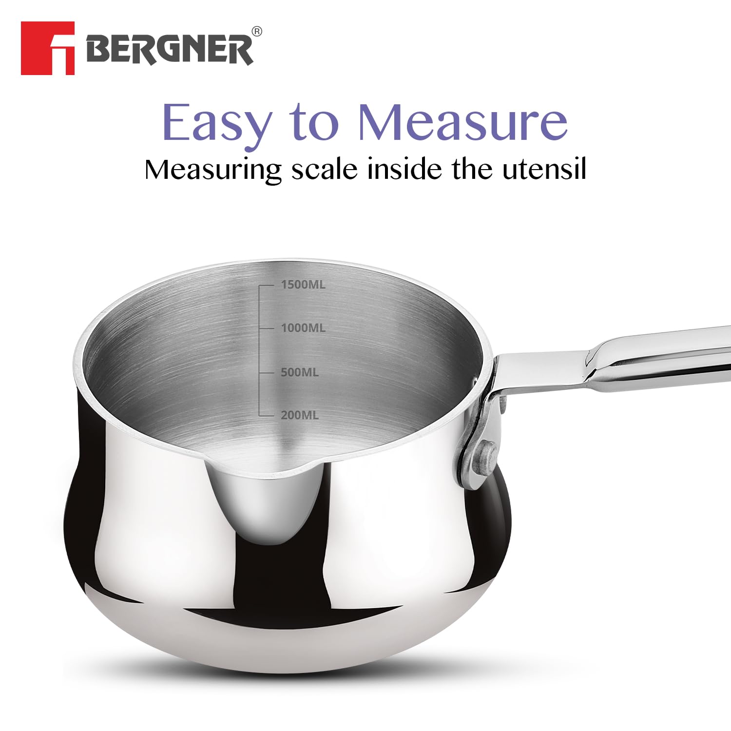 Upgrade your kitchen essentials with the Bergner Essentials Tri-Ply Stainless Steel Coffee/Milk Warmer Pot. Designed to deliver precise heating, its tri-ply stainless steel body ensures even heat distribution, preventing scorching and providing gentle warming for beverages like coffee or milk. Its compatibility with both induction and gas stovetops makes it a versatile tool for every modern kitchen.