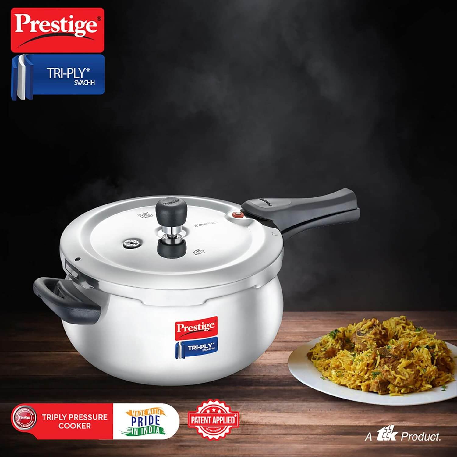 Bring home the Prestige Svachh Triply Pressure Cooker and enjoy hassle-free, hygienic, and quick cooking every day.