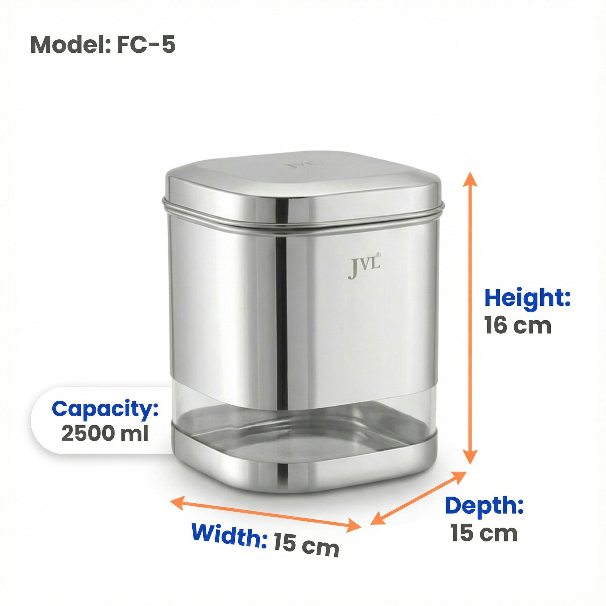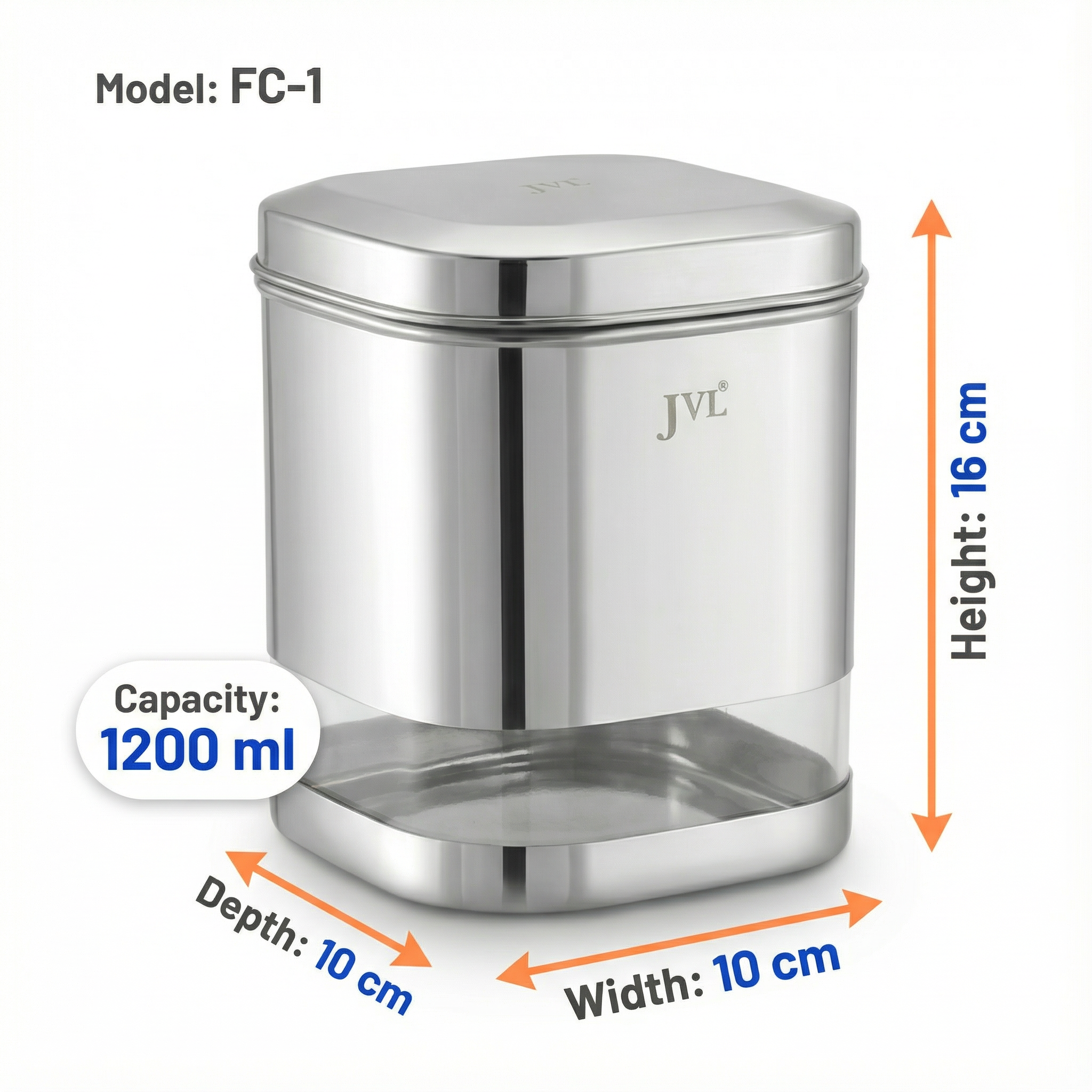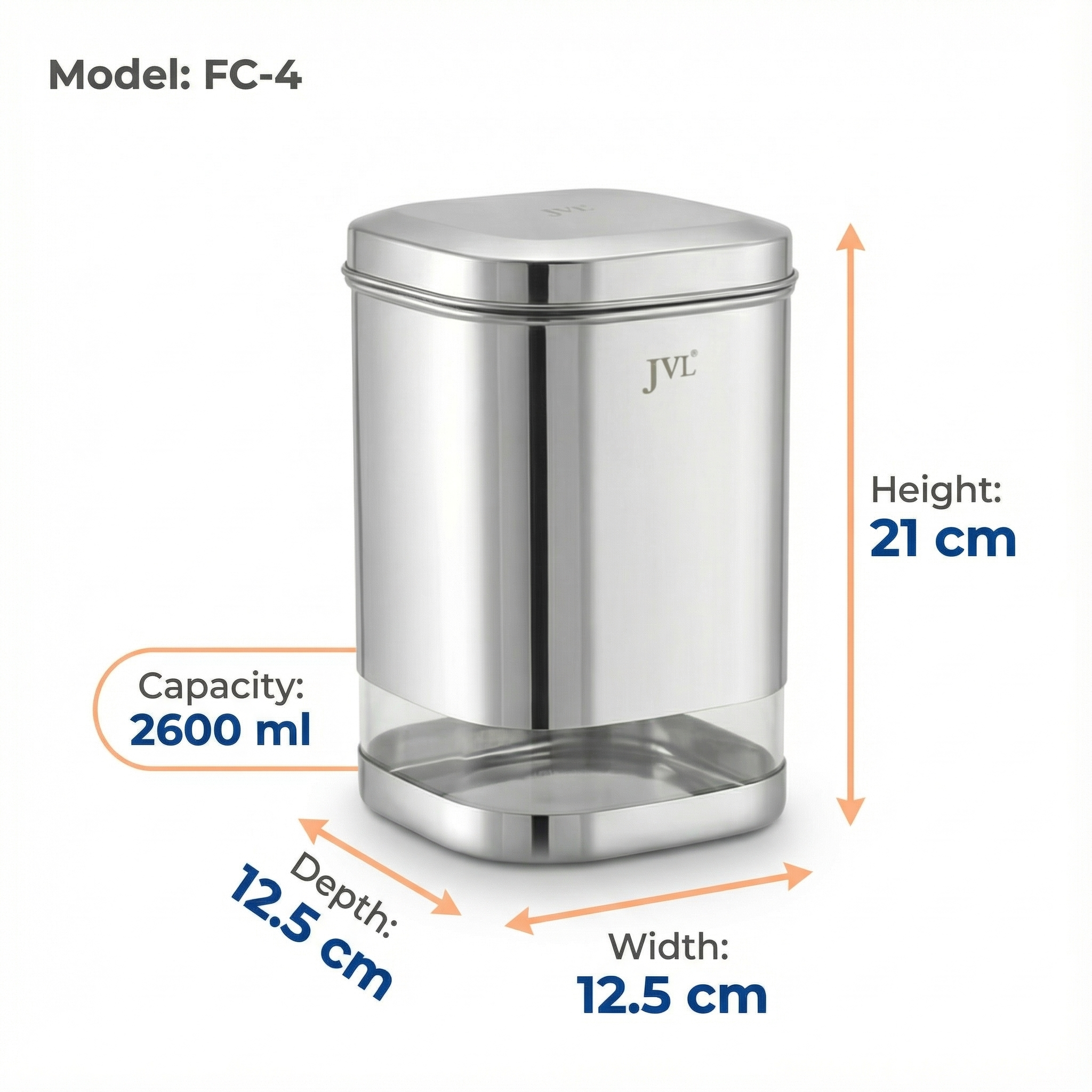 Product Contents: 1 x JVL Flossy Clear Storage Canister(As per selection) (Available in multiple sizes: 1200ml, 1800ml, 2500ml, 1700ml, 2600ml)