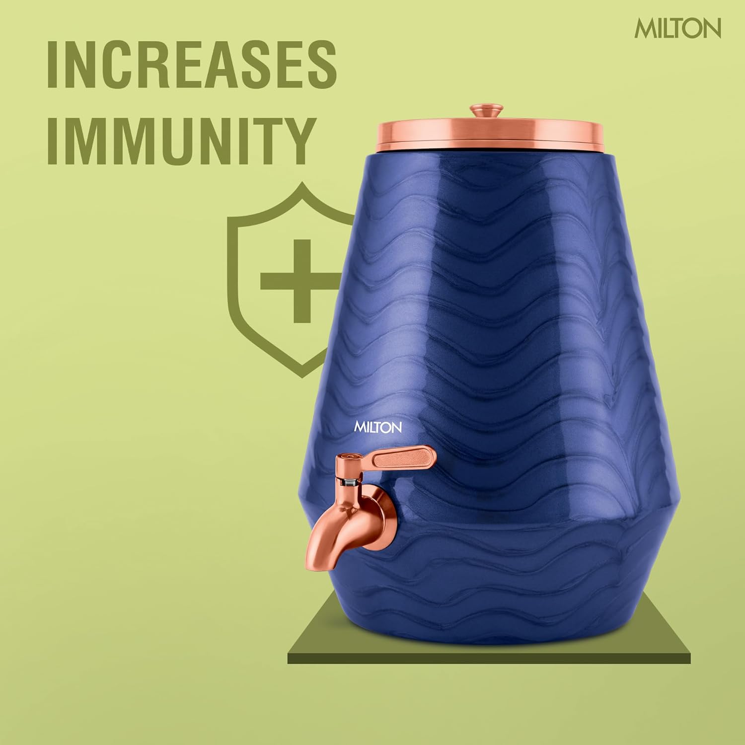 Experience the purity and health benefits of Milton Copper Neerja Matka (5L) – a perfect blend of tradition and modern functionality. Crafted from 99.99% pure copper, this exquisitely designed water storage matka is not just an aesthetic piece but a health-enhancing essential. Copper is known for its antimicrobial properties, which help purify water naturally while improving digestion and boosting immunity.