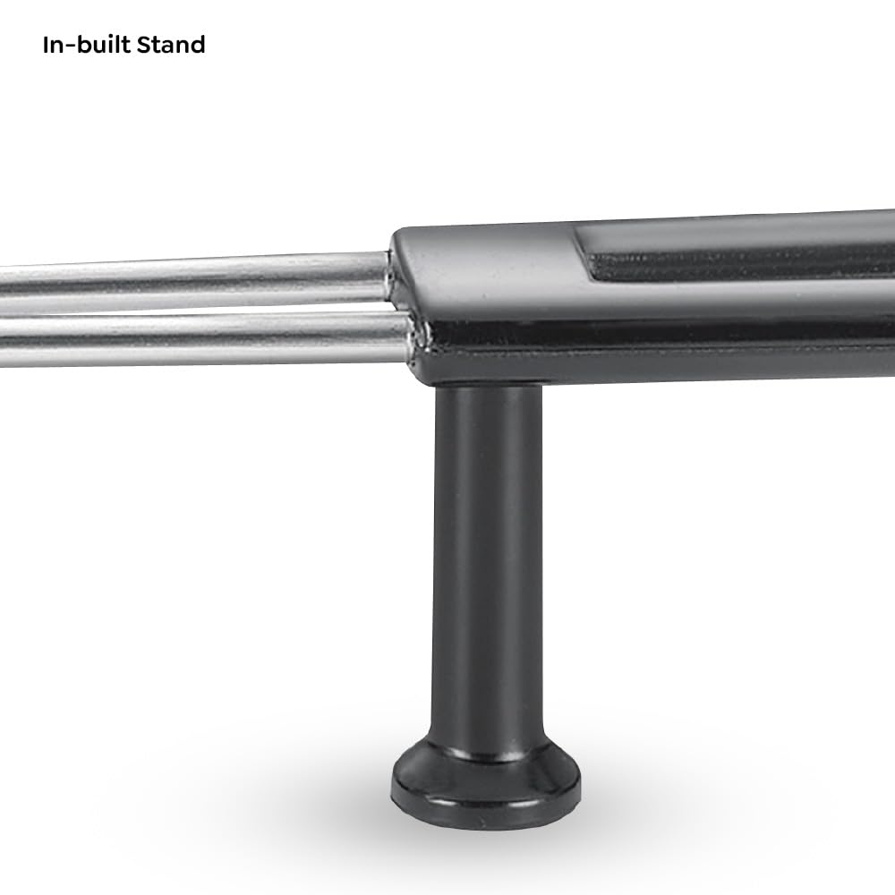 The rimmed edge isn't just aesthetically pleasing – it's a practical innovation that prevents spills when pouring hot tadka over your dishes. No more oil stains on your stovetop or counters. The in-built stand is a game-changer for safety and convenience, allowing you to rest the pan securely between uses without worrying about hot oil dripping onto surfaces.